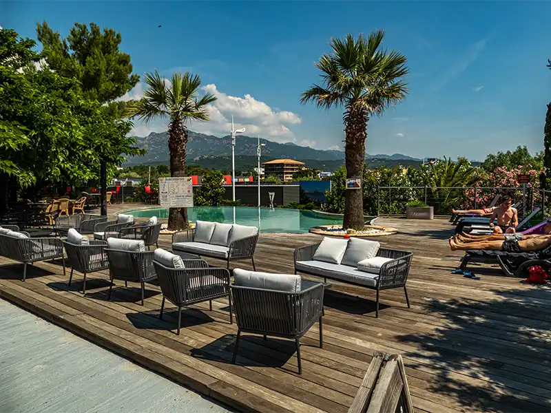 Amusez-vous dans notre piscine plein air réservée à tous et profitez de notre espace baignade au Camping 2 étoiles La Matonara en Corse du sud.