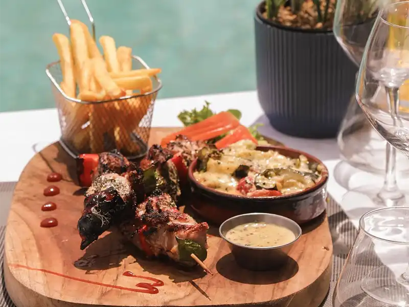 Notre chef cuistot vous propose des menus gourmands tous les jours, des salades composées, de succulentes pizzas, ainsi que de merveilleuses grillades à savourer en famille ou entre amis.